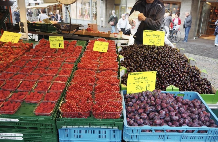 Rasberries, red currants, cherries and grapes. So colorful are the markets.