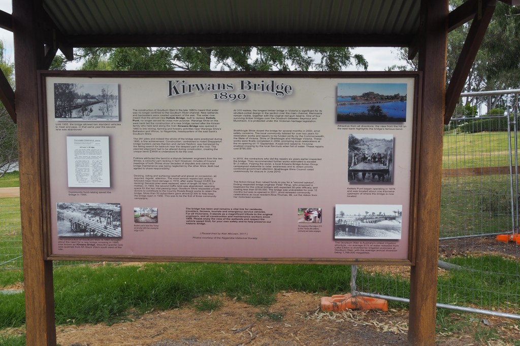 The old bridge was built in 1890 and connects Nagambie and the town of Kirwins Bridge.