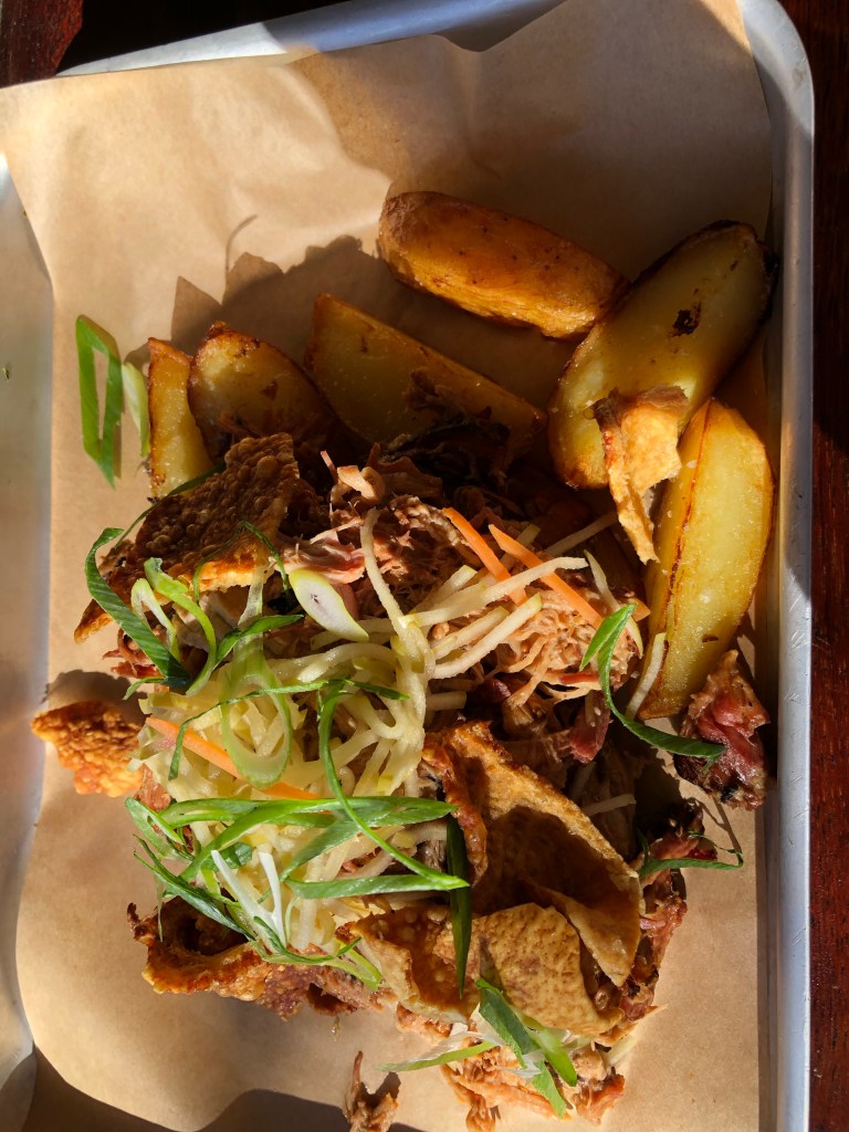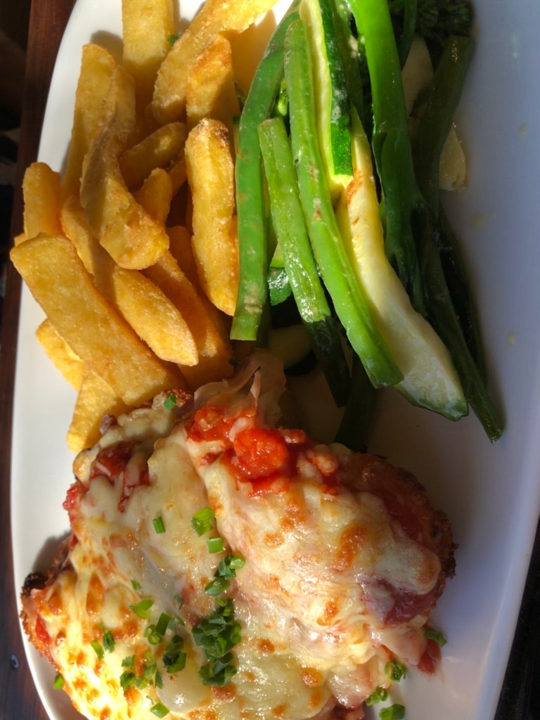 Lunch was amazing. Greg ordered the Chicken Parmigiana and I ordered the Gluten Free Pulled Pork & Crackle slow cooked in Mustard with pickled Apple. I also had some delicious baked potatoes served with it. I couldn’t eat it all and was able to take it the leftovers home. The staff were lovely and friendly and as soon as we sat down they brought a fresh bowl of water out for our dogs.