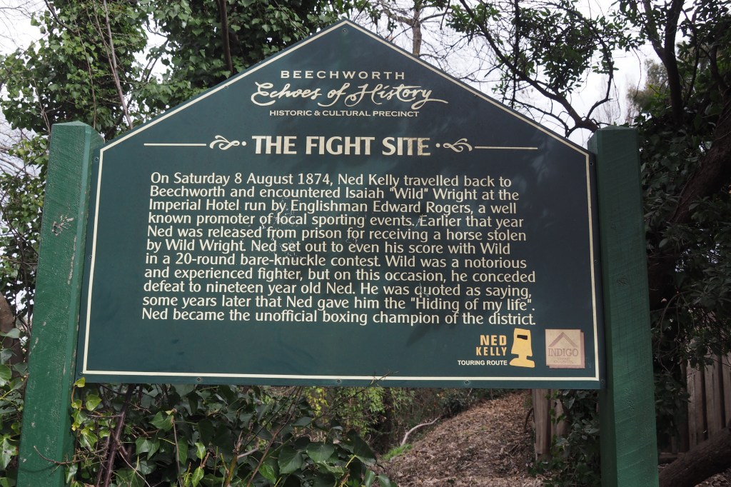 Many years ago we visited the court house where Ned had been tried. The prison was also a regular haunt of the Kelly Family including his mum who spent a short time there before being sent to Melbourne gaol.. Ned Kelly the Bushranger won a bare knuckle boxing match in Beechworth, lasted 20 rounds! There is a sign noting the site of the Imperial Hotel where the fight took place. Ellen Kelly was sentenced to 3 years hard labour for the attempted murder of a policeman and spent some of that time in the Beechworth Gaol.