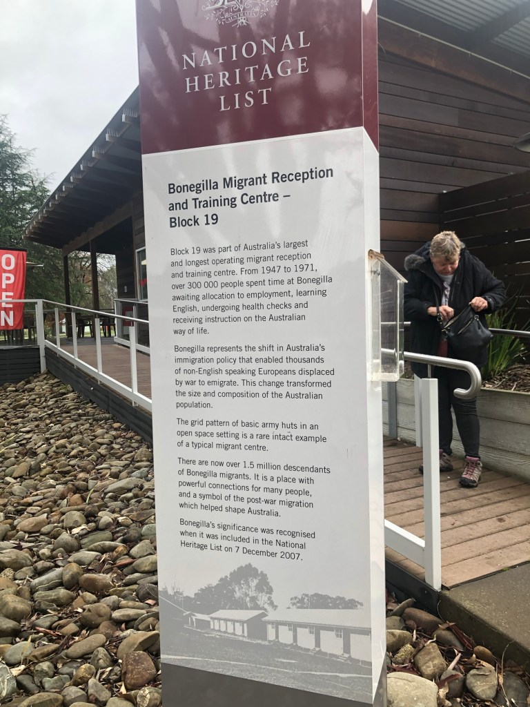 Last year when my bestie Lyn who I started primary school with, visited Albury Wodonga we visited Bonagilla – The Migrant Experience. I drove past this place often at least once a week on our way to the Lake Hume with our dogs. I kept saying one day I will visit. Last year that one day arrived. Back in 2015 I lived in Wodonga – a small street and we found out the whole street were migrants who had all gone through Bonagilla. The house over the road, Italians, our neighbours – Polish, neighbours on the other side of the house – Italians.